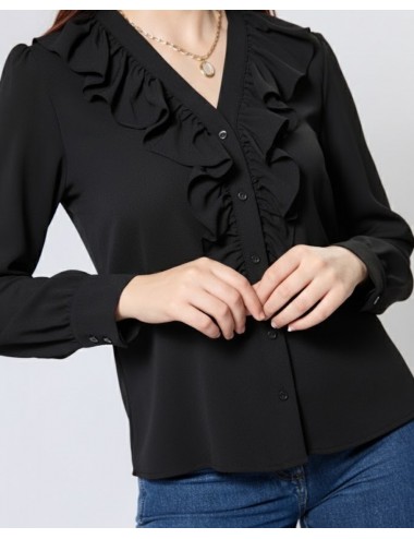 • Top droit avec volant au devant, patte boutonnée, manches longues avec fronces
