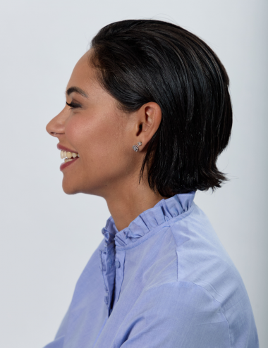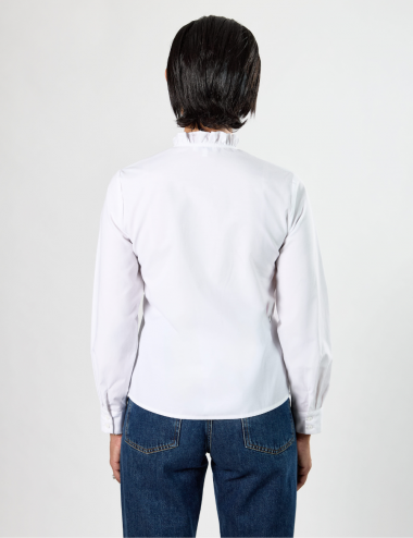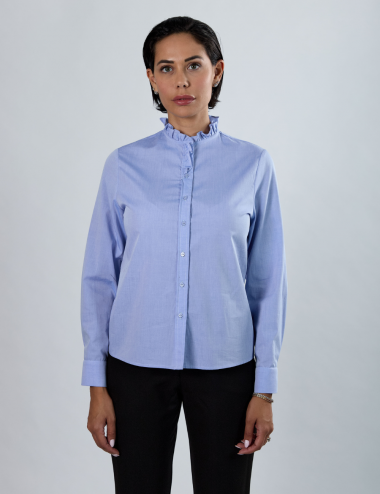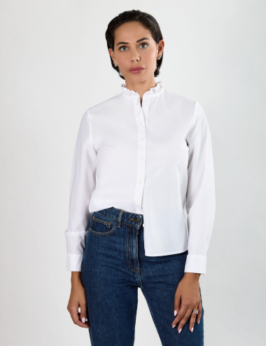 Chemise ajustée à manches longues, col volanté et boutonnage classique.